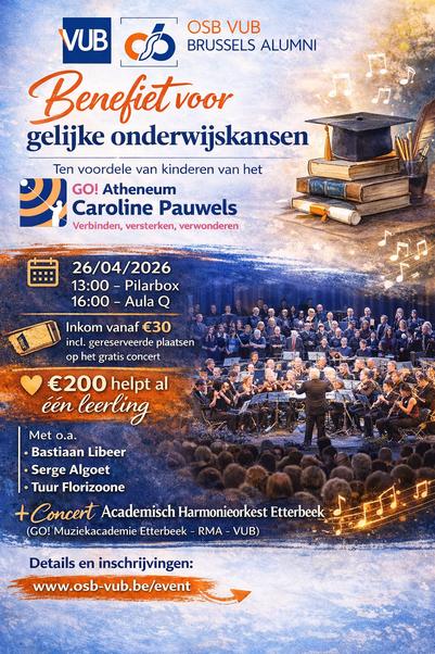 Deelnemers aan de benefietnamiddag van OSB-VUB beschikken over exclusief gereserveerde plaatsen voor het concert van Het Academisch Harmonieorkest Etterbeek (AHo Etterbeek), waardoor reflectie en muzikale beleving naadloos in elkaar overvloeien.